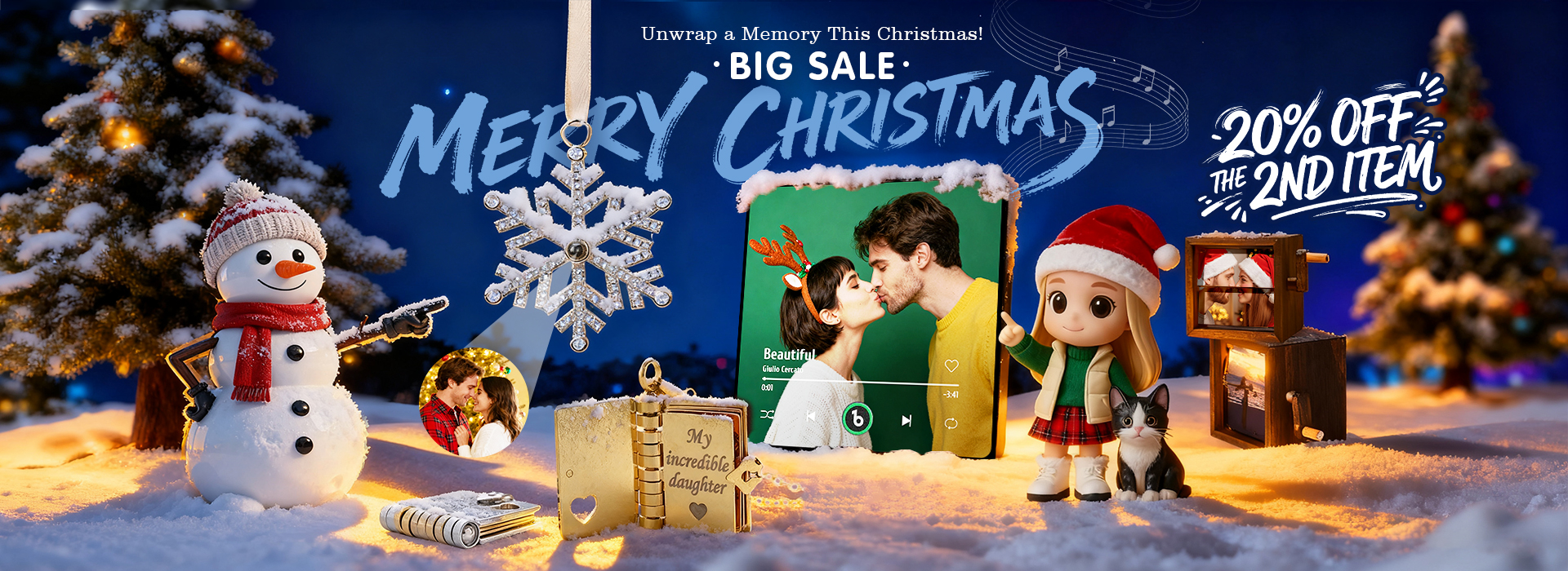 Custom Photo Projection Ornament Retro Christmas Tree Decoration for Christmas Gift -