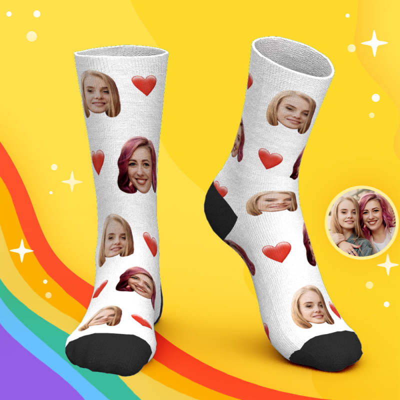 3D Preview Custom Face Heart Socks with Your Text Personalized LGBT Gifts