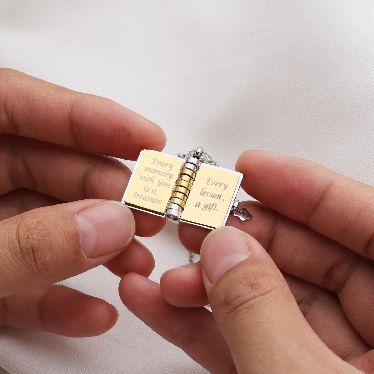 Let your mom wear your words close to her heart. This mini book necklace isn’t just jewelry-it’s a heartfelt tribute to the one who’s always been there. Each engraved page tells part of your story and love for her, making this the perfect gift for Mother’s Day, birthdays, or just to say thank you.