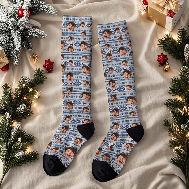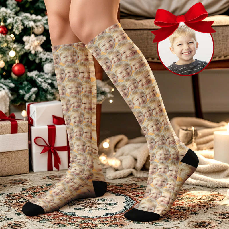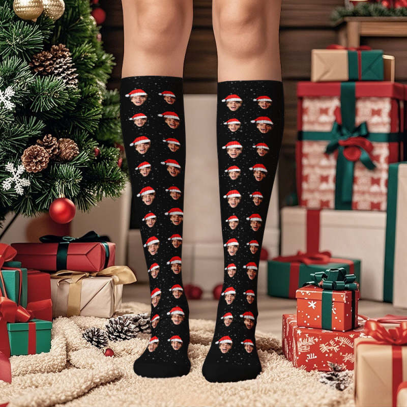 Christmas Gifts Custom Face Knee High Socks Personalized Xmas Socks Merry Christmas