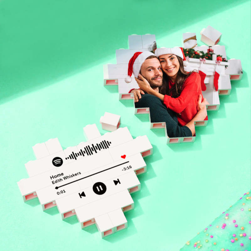Couple Gifts Custom Spotify Code Building Brick Personalized Photo Block Heart Shape Best Christmas Gift