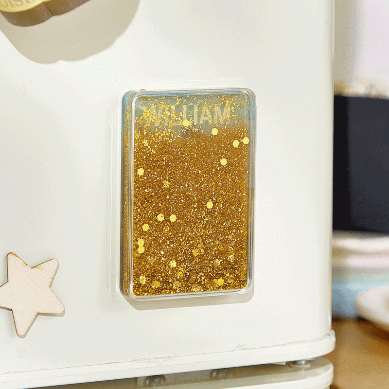 This unique personalized fridge magnet features a fascinating liquid sand effect and adds a dynamic and artistic touch to your home decor.