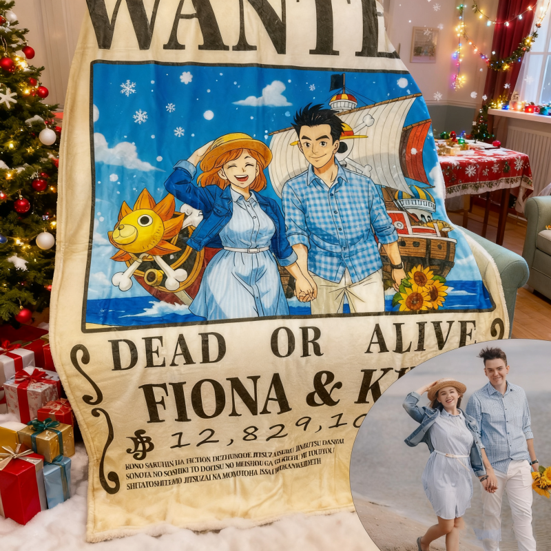 Transform your love story into an epic adventure! This Custom Anime "Bounty" Couple Portrait features a unique bounty blanket theme, turning you and your significant other into a dynamic, anime-style duo. This is the perfect gift for couples who share a passion for bold journeys and unforgettable stories.