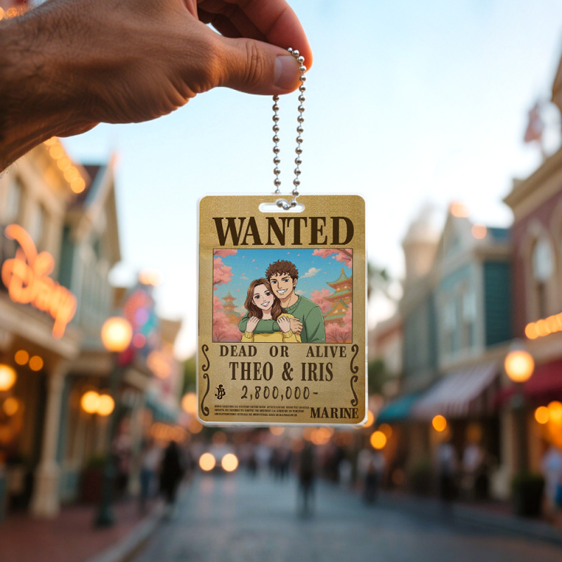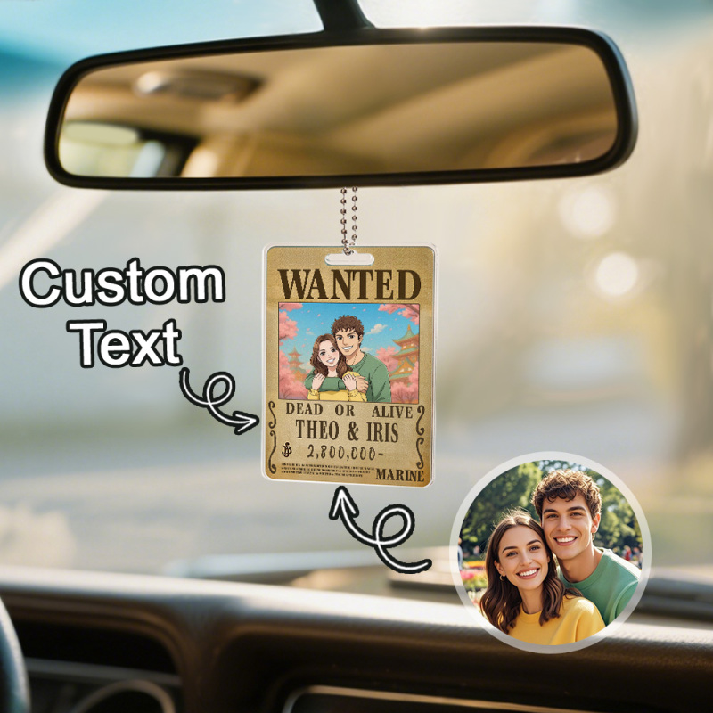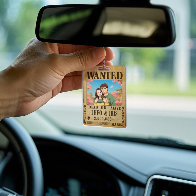 Custom Anime Bounty Couple Portrait Car Hanger Personalized Anime Style Wanted Car Hanger Portrait Unique Captains' Couple Portrait Car Hanger Gifts for Lover