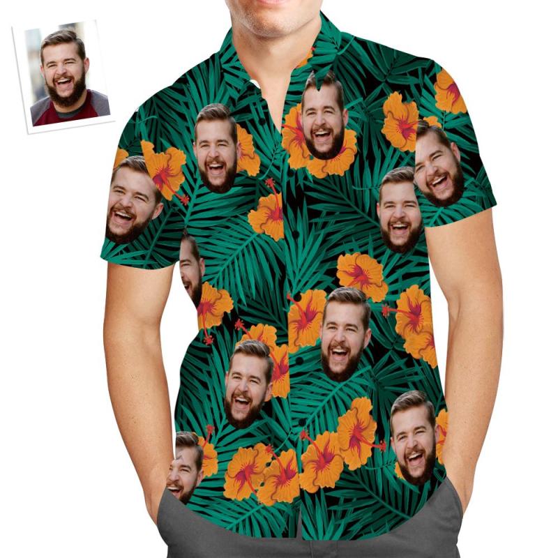 Custom Face Hawaiian Shirt Hibiscus Flower Funny Beach Shirt Christmas Gifts