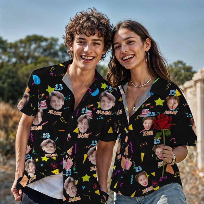 Custom Face Hawaiian Shirt Personalized Birthday Cake Name and Age Face Men Hawaiian Shirt Birthday Party Gift