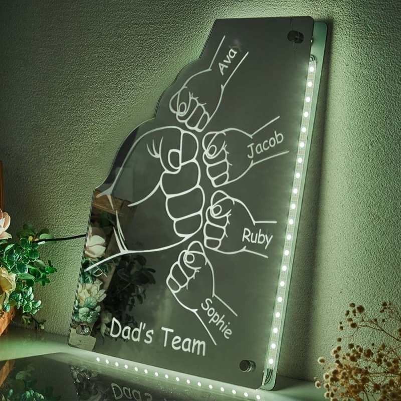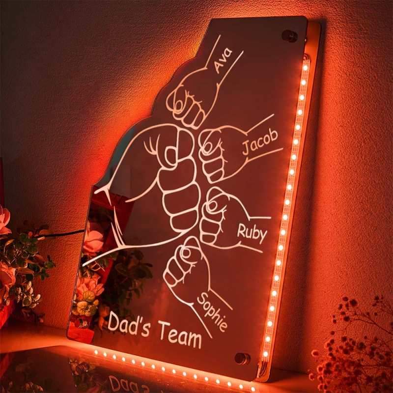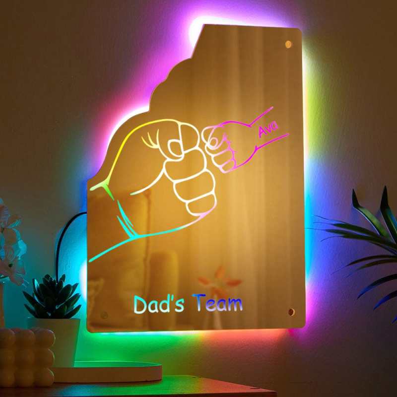 This super stylish personalized mirror with LED lighting is a perfect and unique edition for Father, they will love turning on the personalized mirror and seeing their own name in light. This eye-catching personalized mirror is the ideal gift and it will be cherished and loved for many years by recipient.Includes remote control for LED lighting and chrome wall mounting brackets.