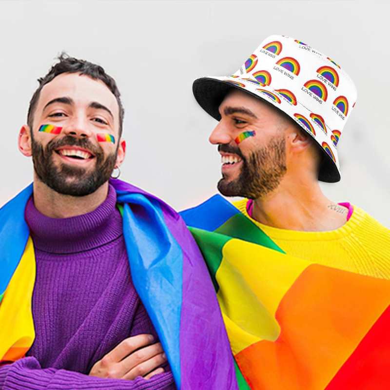 Custom LGBT Bucket Hat Unisex Pride Rainbow Hat Wide Brim Summer Bucket Cap