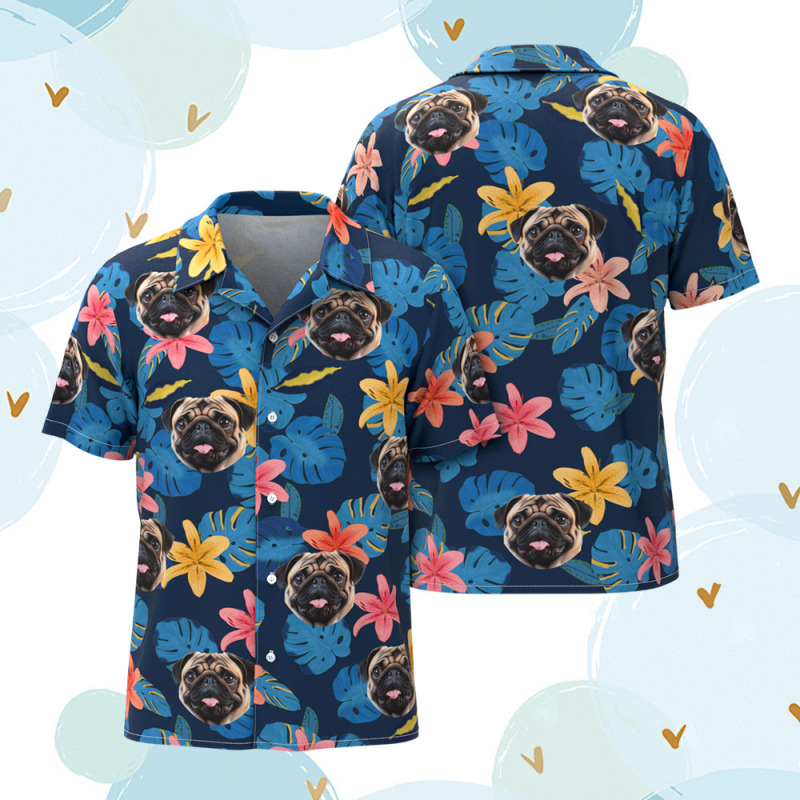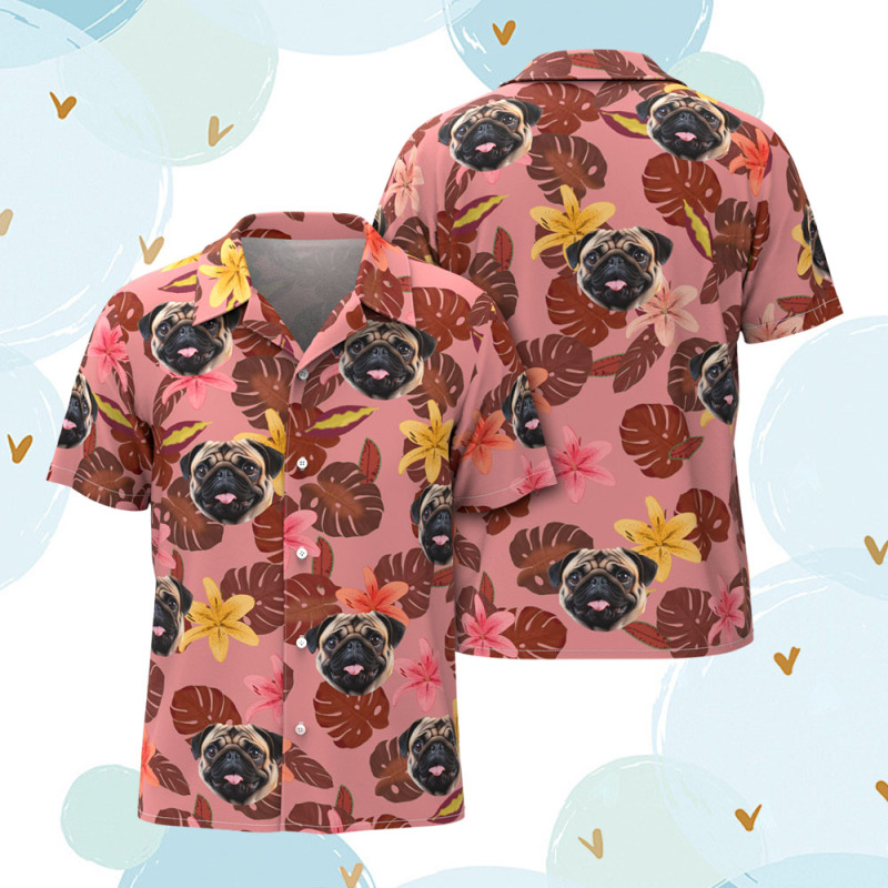 Custom Men Hawaiian Shirts Pet Face Tropical Hawaiian Shirt Gift for Pet Lover