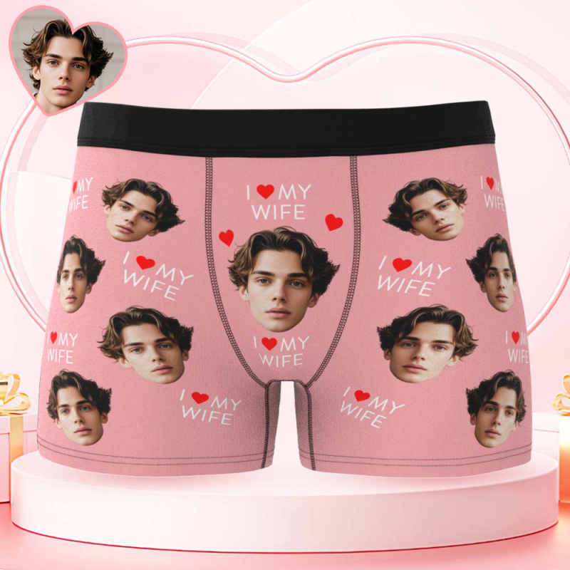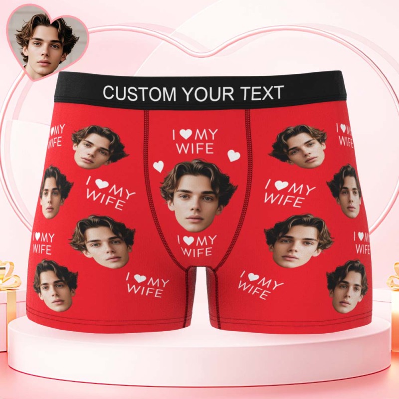 Custom Mens Face Boxer I Love My Wife Boxer Personalized Belt Color Face Boxers Valentines Day Underwear