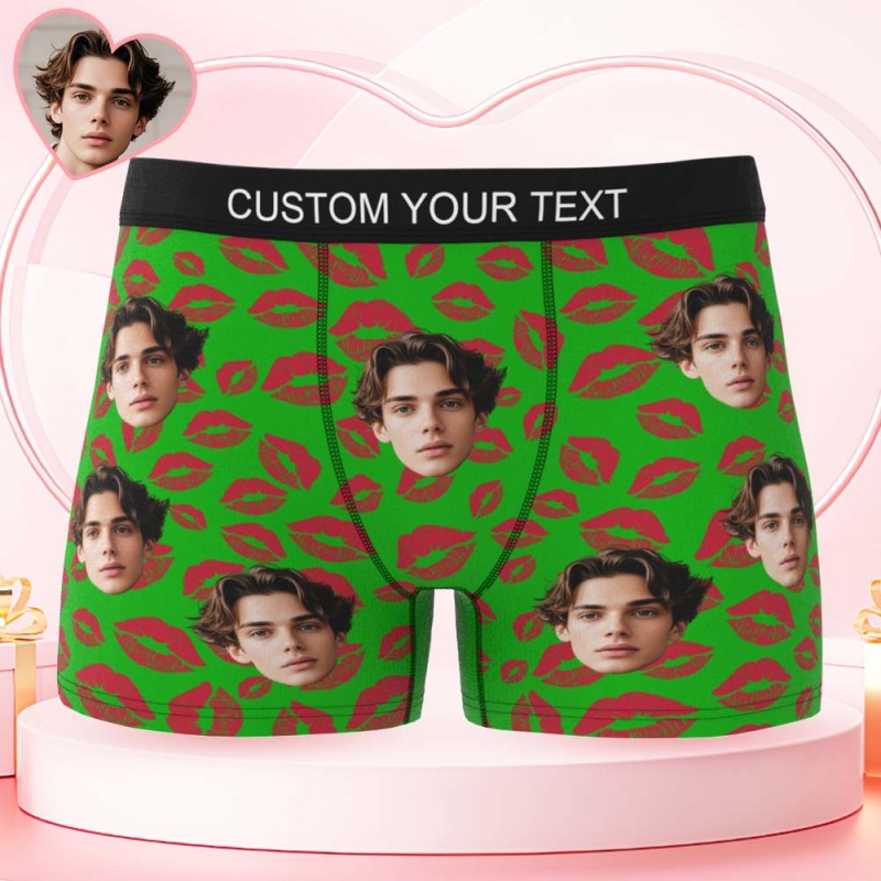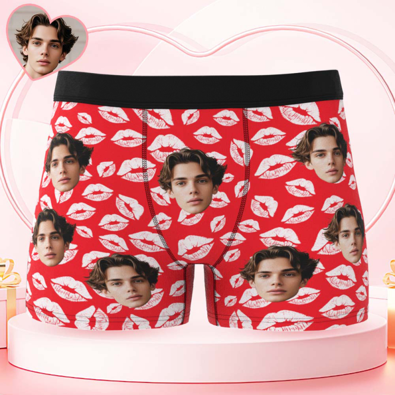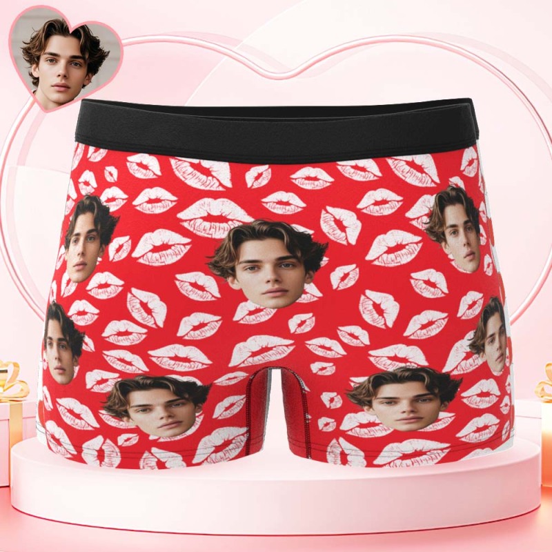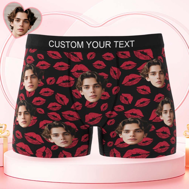Custom Mens Kisses All Over Boxer Personalized Belt Color Face Boxers Valentines Day Underwear