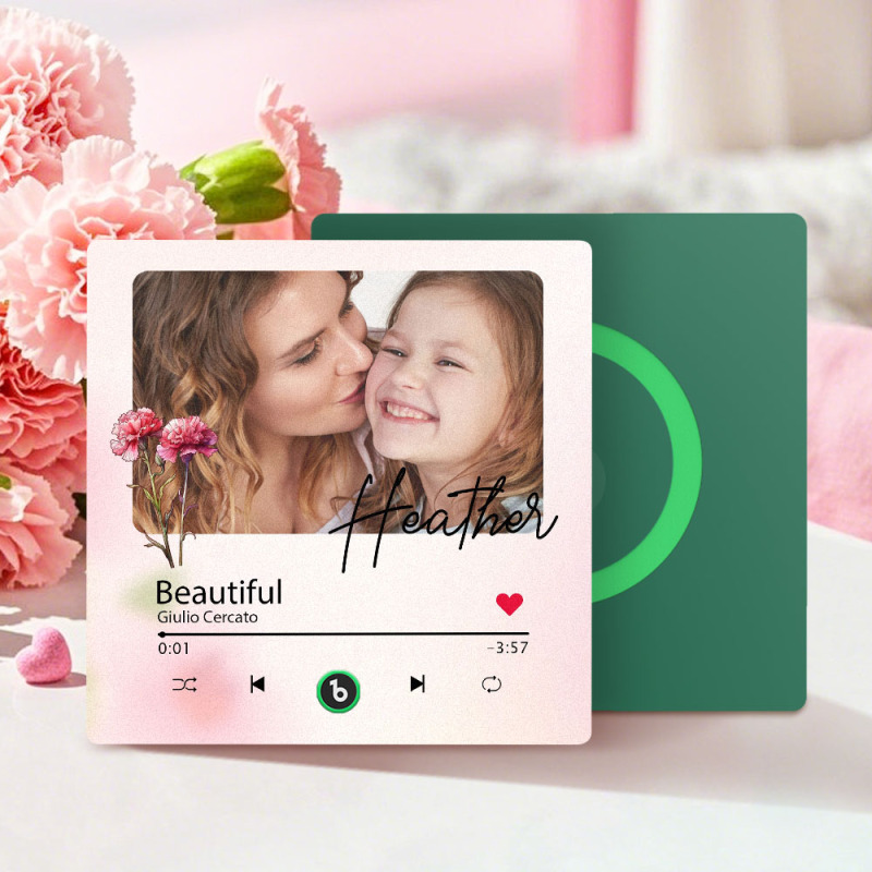 Custom Mother's Day Music Fridge Magnet Flower Face & Text Personalized Photo Frame Gift for Mom