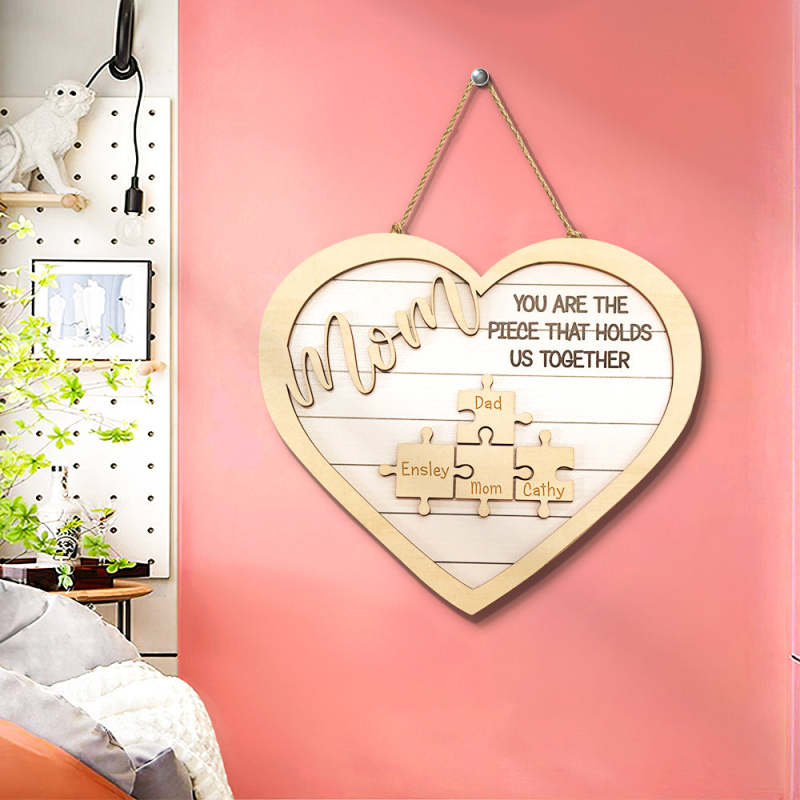 Custom Mom You Are the Piece That Holds Us Together Puzzle Piece Sign Mother's Day Gifts