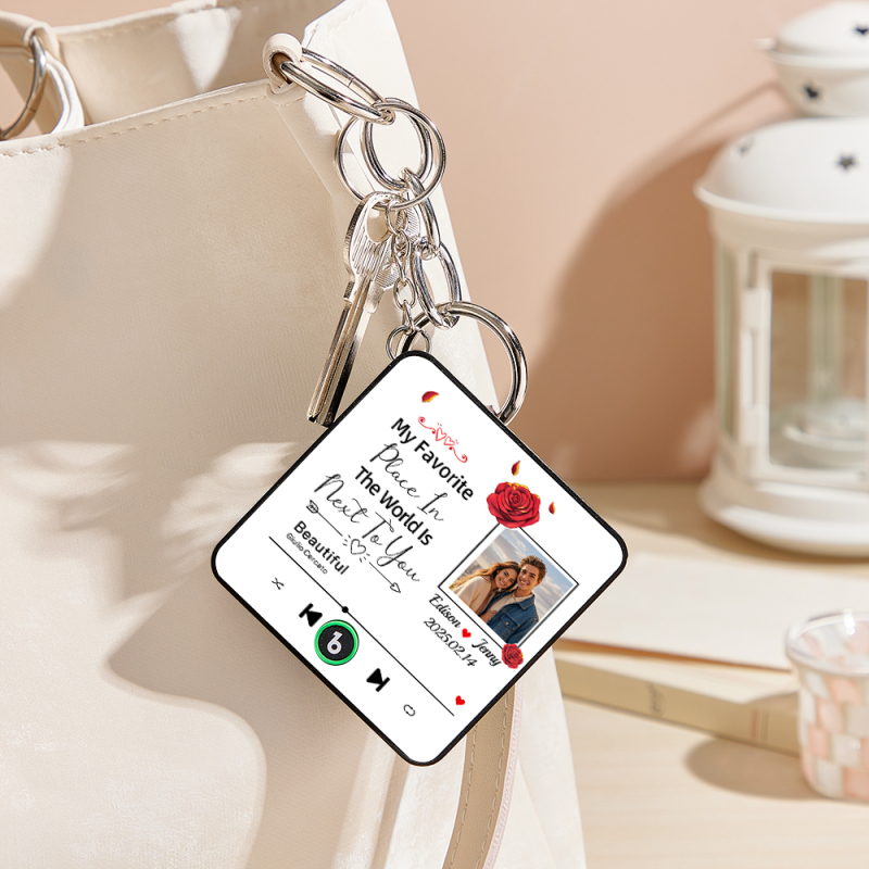 Custom Music Fridge Magnet Personalized Photo Refrigerator Magnet With Flower Pattern My Favorite Place In The World Is Next To You Gift for Couple