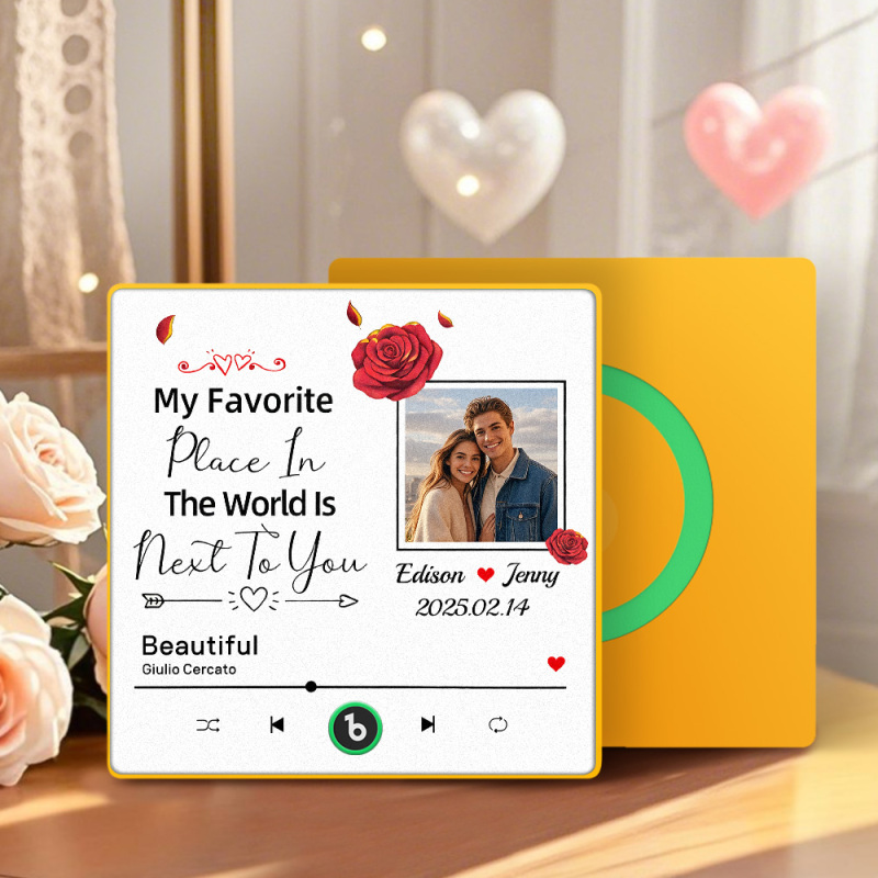 Custom Music Fridge Magnet Personalized Photo Refrigerator Magnet With Flower Pattern My Favorite Place In The World Is Next To You Gift for Couple