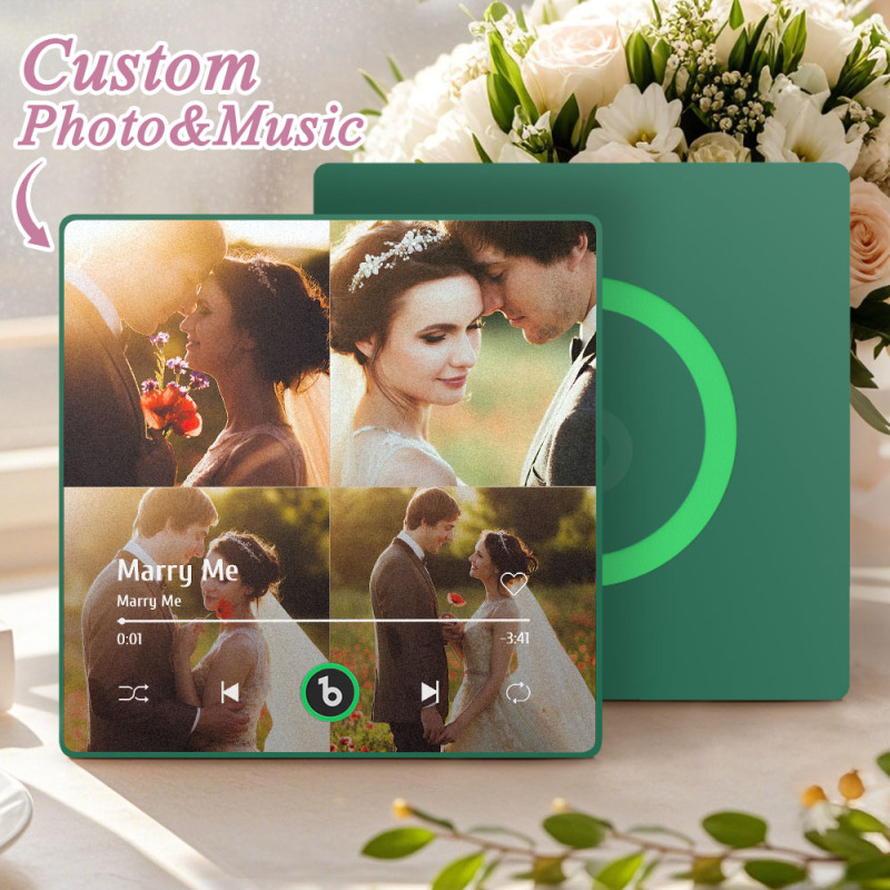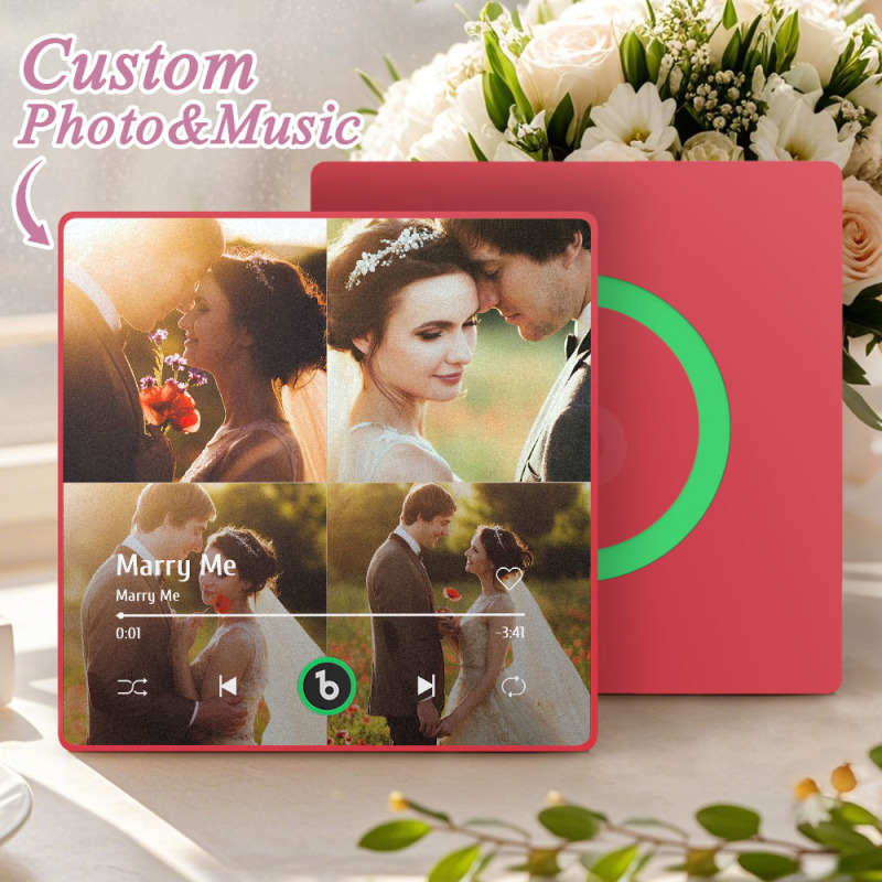 Custom Music Multiple Photo Fridge Magnet Personalized 4 Photo Music Fridge Magnet That Can Play Music Without Cellphone Supports Bluetooth Connectivity Wedding Gifts for Him