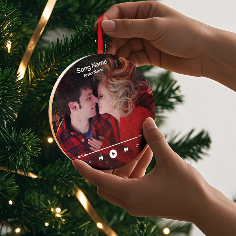 Music and Photo Christmas Ornament - Celebrate precious memories with our customisable round photo Christmas ornament, designed to capture the magic of the season.