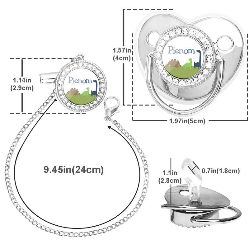 Custom Name Bling Pacifier and Pacifier Clip Set Personalized Dinosaur Glitter Crystal Pacifier Gift for Baby