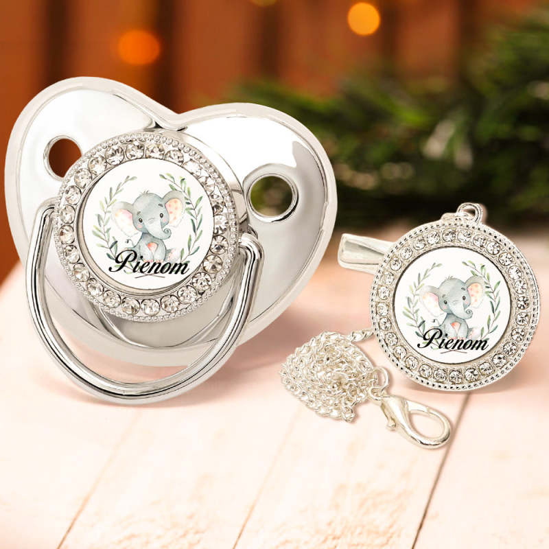 Custom Name Bling Pacifier and Pacifier Clip Set Personalized Elephant Glitter Crystal Pacifier Gift for Baby