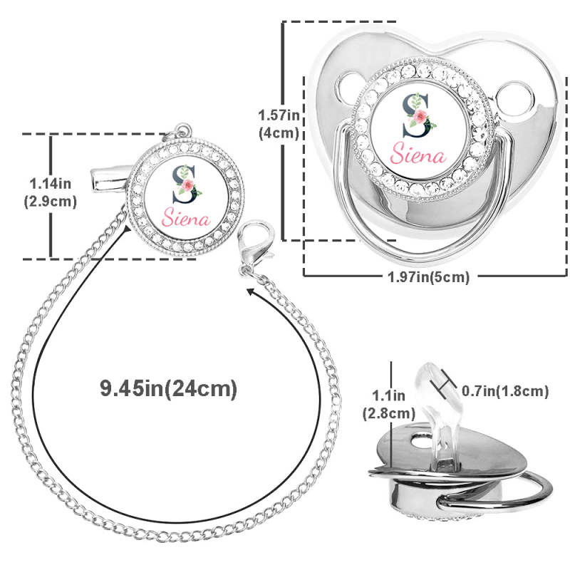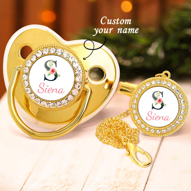 Custom Name Bling Pacifier and Pacifier Clip Set Personalized Glitter Crystal Pacifier Gift for Baby