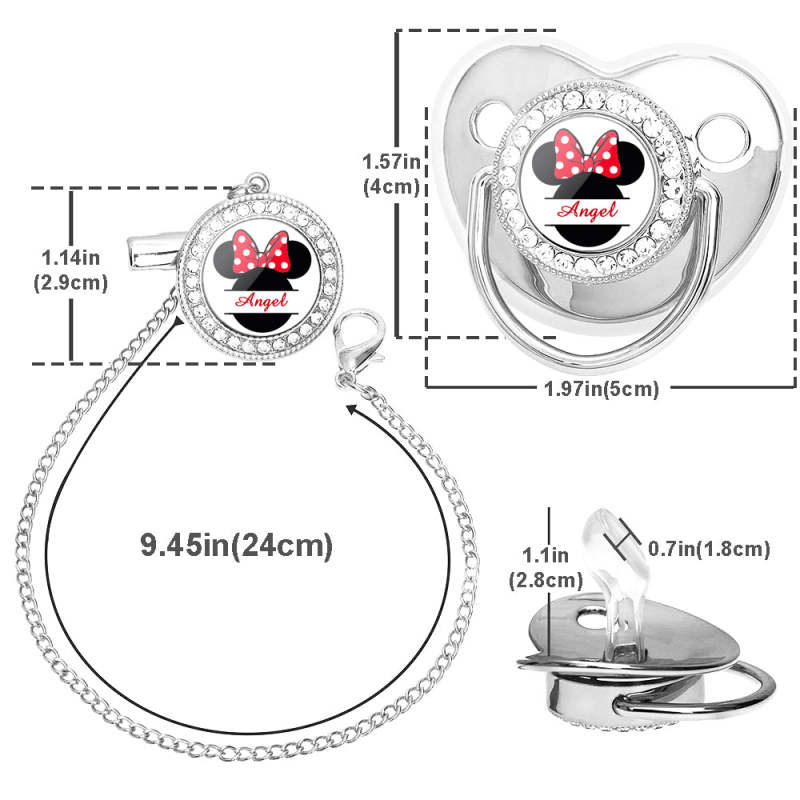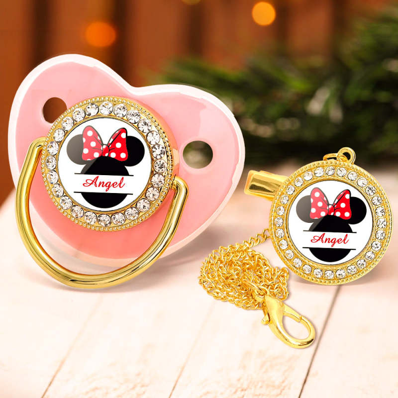 Custom Name Bling Pacifier and Pacifier Clip Set Personalized Minnie Glitter Crystal Bling Pacifier Gift for Baby