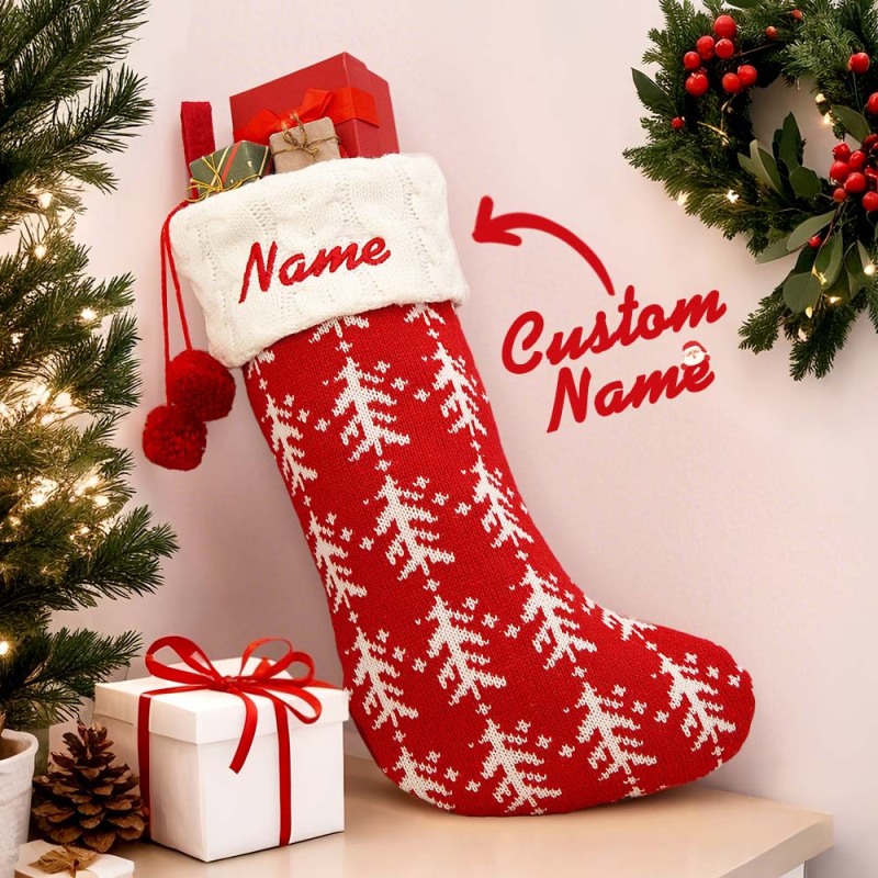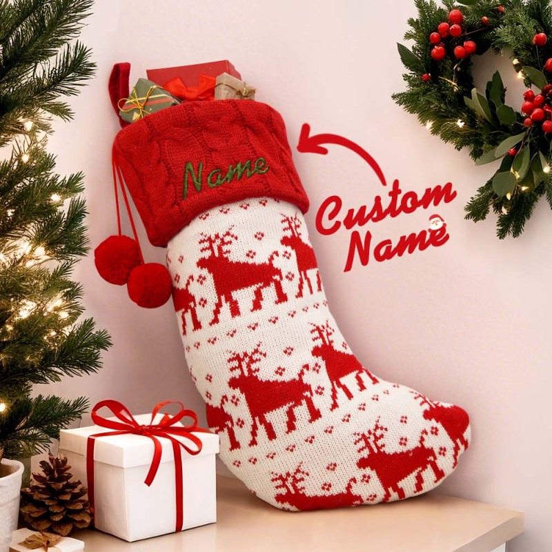 Custom Name Christmas Decoration Knitted Christmas Socks Christmas Gift Bag Candy Bag Knitted Elk Socks
