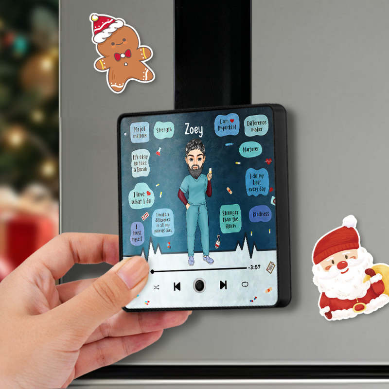 Custom Nurse Portrait Personalized Music Fridge Magnet Merry Christmas Custom Music Magnets Can Play Songs Christmas Gift Family Gifts