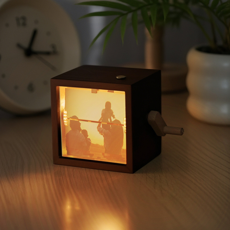 Custom Photo Flipbook Frame Animation 24 Pictures Machine Mechanical Hand-cranked Flipbook Box Photo Album with Light Black Walnut Anniversary Gifts