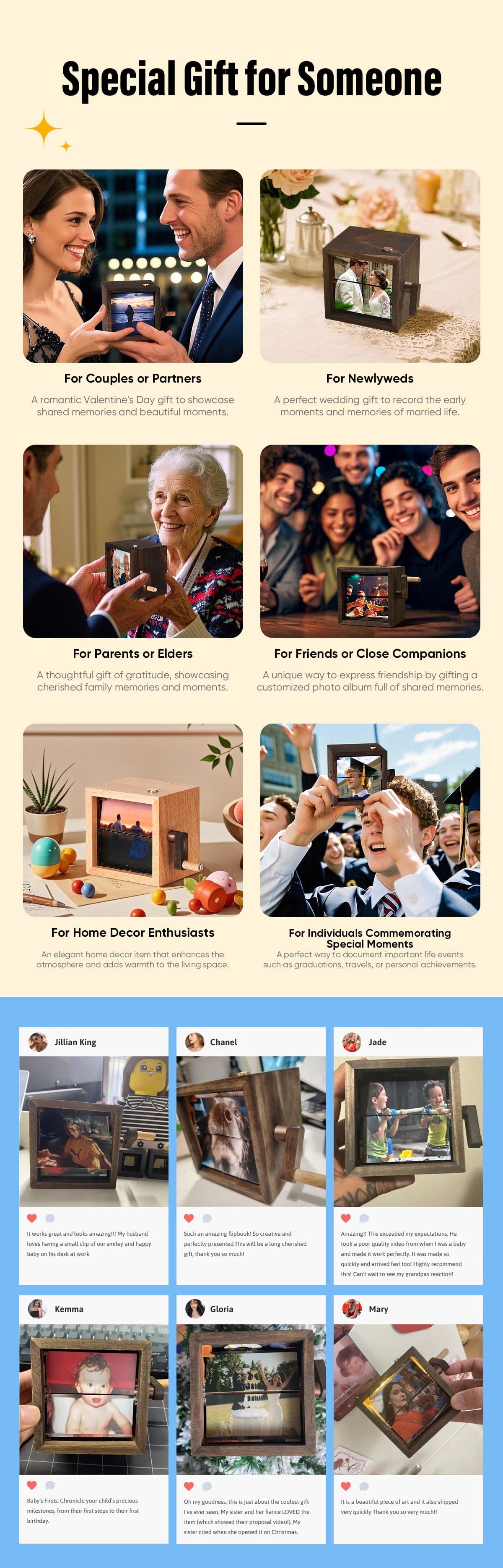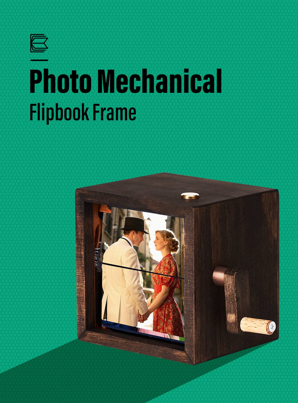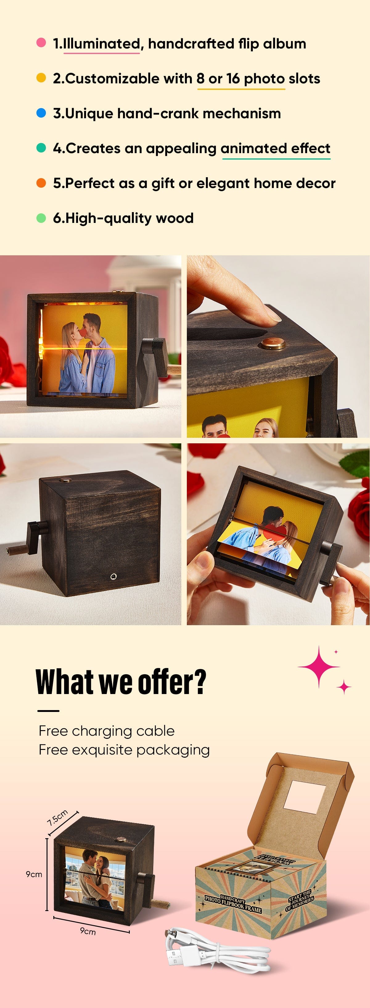 Custom Photo Flipbook Frame Animation Machine Mechanical Hand-cranked Flipbook Box with Light Black Walnut Christmas Gifts