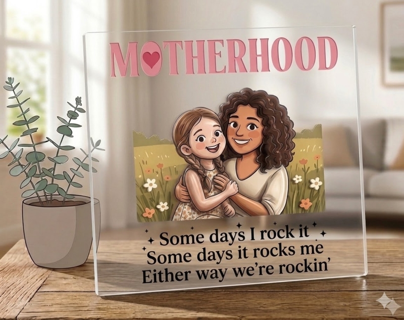 Custom Photo Motherhood Plaque Home Decor Cartoon Style Gifts for Mom