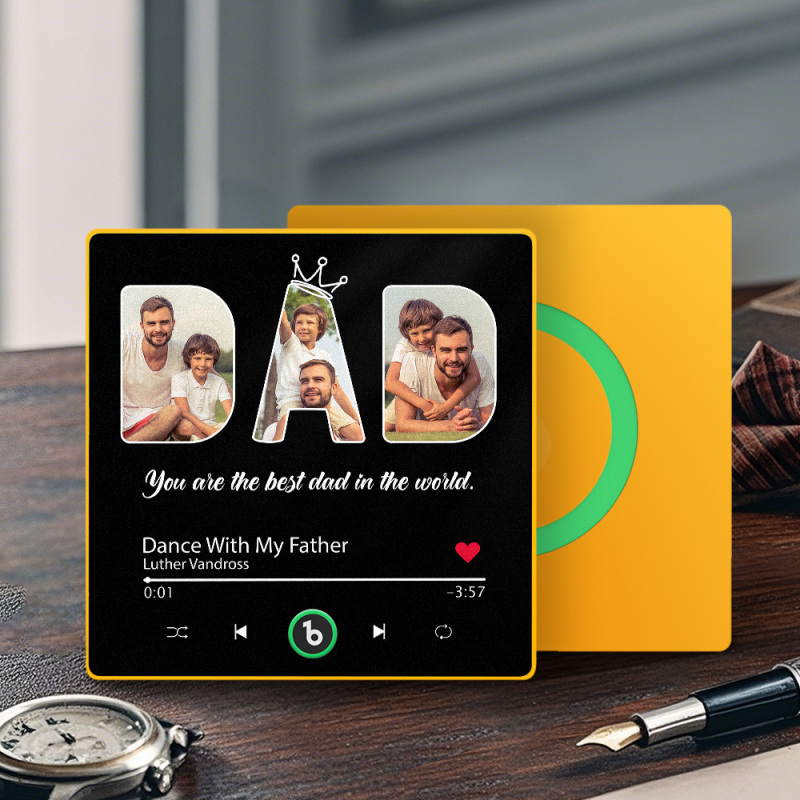 Surprise your dad with a personalized touch! Our Custom Dad Music Fridge Magnet is a thoughtful gift that will bring a smile to his face every time he opens the fridge. Add a special message or song for a unique and heartfelt present.