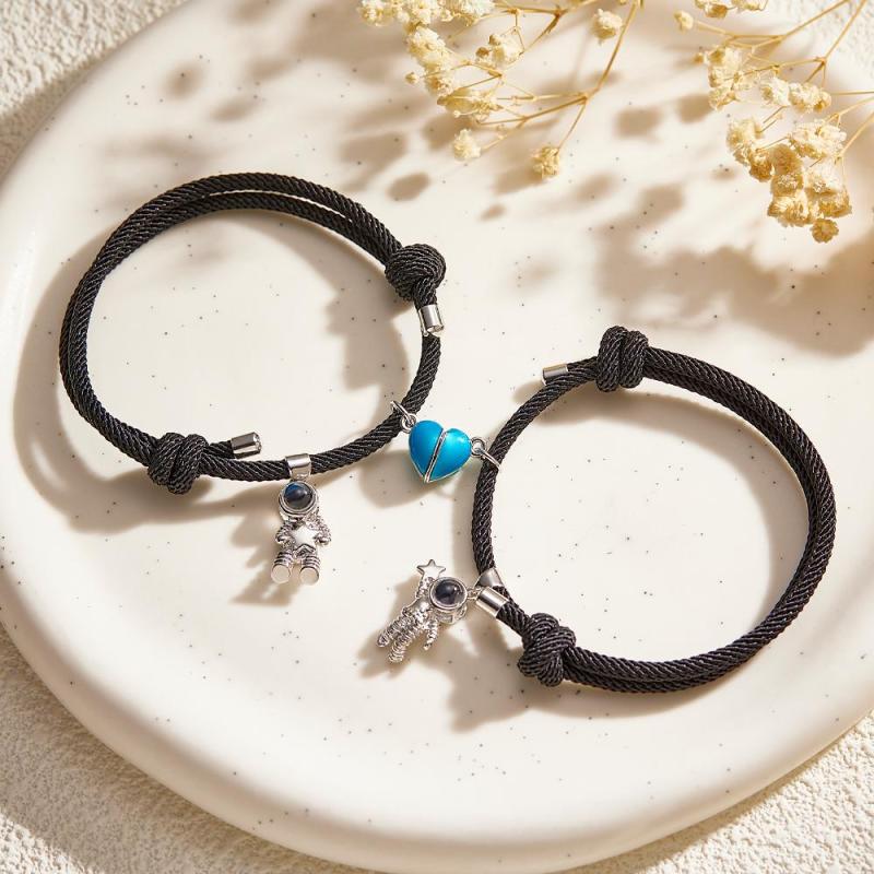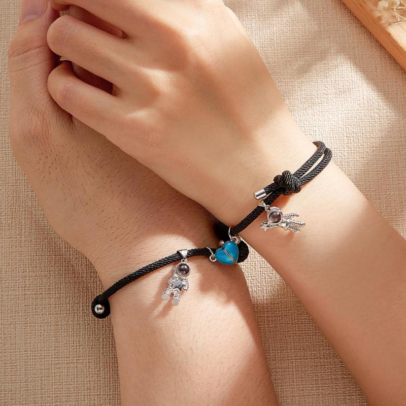 Custom Photo Projection Matching Bracelets for Couples Magnetic Glow-in-the-Dark Heart Shape