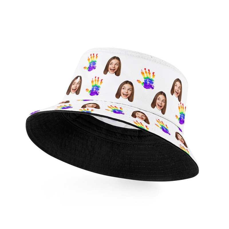 Custom Pride Bucket Hat Personalized Your Face LGBT Rainbow Hat Gift for Pride Month