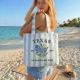 Carry your favorite state with you wherever you go. This personalized canvas tote bag features a beautiful vintage-inspired state design, customized with your chosen state name, establishment year, and iconic floral artwork. The soft blue striped fabric gives it a timeless coastal feel, making it perfect for everyday use, beach trips, shopping, travel, or as a thoughtful gift.