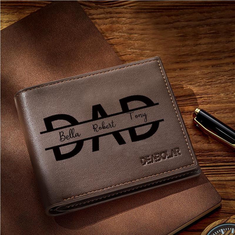 Custom Wallet Engraved Wallet Personalized Kids Name Leather Wallet Gift for Dad