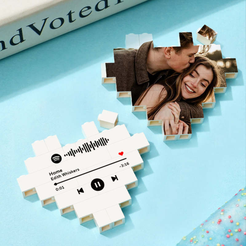 Gifts for Him Custom Spotify Code Building Brick Personalized Photo Block Heart Shape