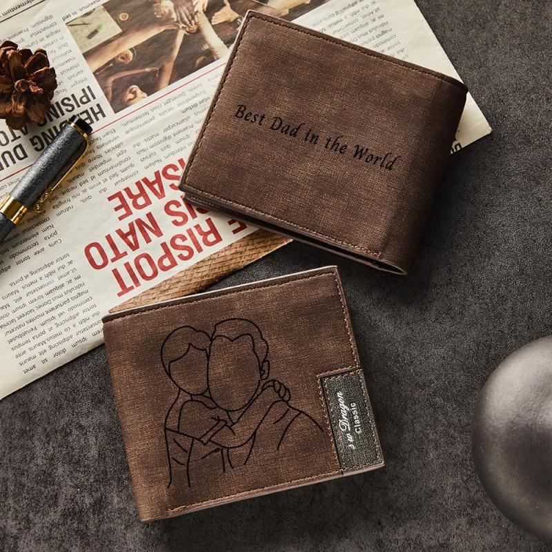 Custom Photo Wallet Line Drawing Photo Wallet Engraved Wallet Men's Wallet Best Dad Gift