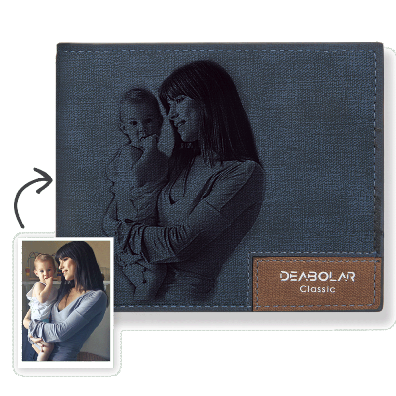 Father's Day Gift Ideas Men's Bifold Short Custom Photo Wallet Blue