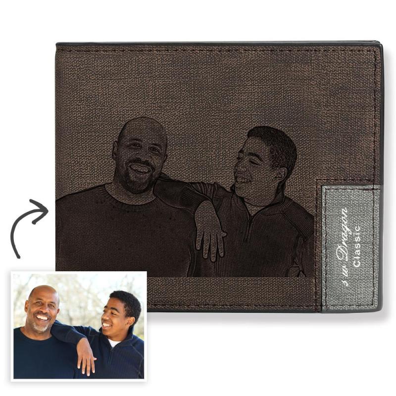 Father's Day Gift - Biffold Short Custom Photo Wallet Brown
