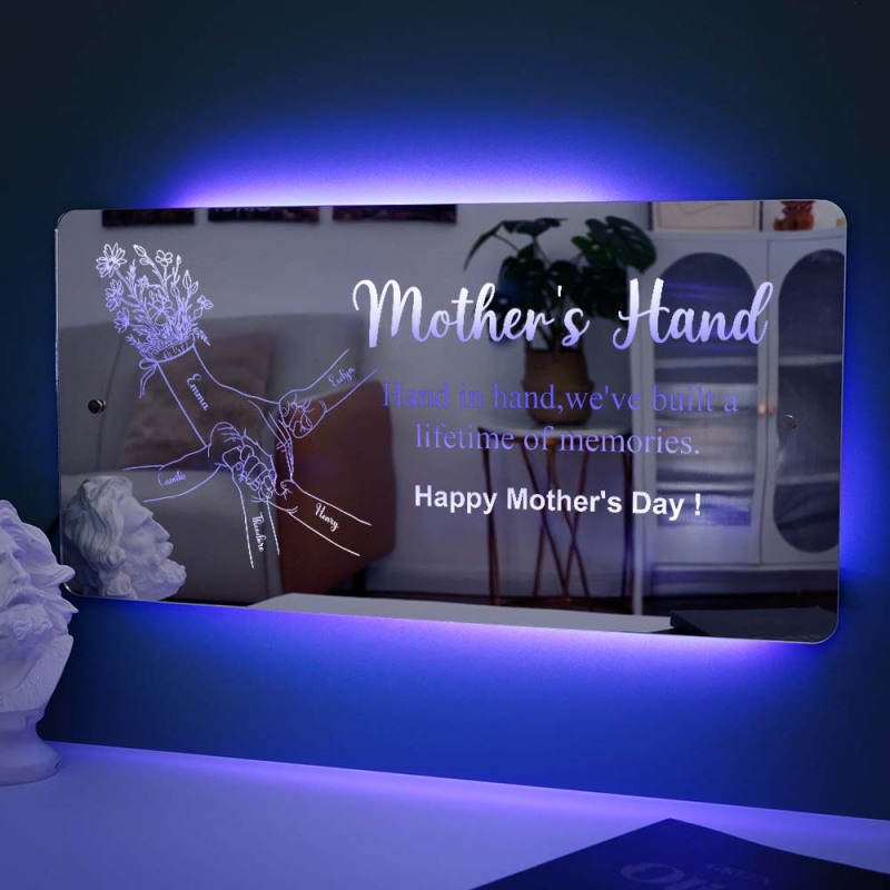 Mother's Day Gift Hand in Hand Personalized Mom and Kids Personalized Mirror Light Gift for Mom