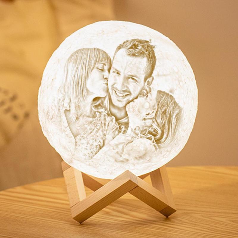 Personalized 3D Printing Photo&Engraved Moon Lamp - For Family - Touch 2 Colors(10cm-15cm)