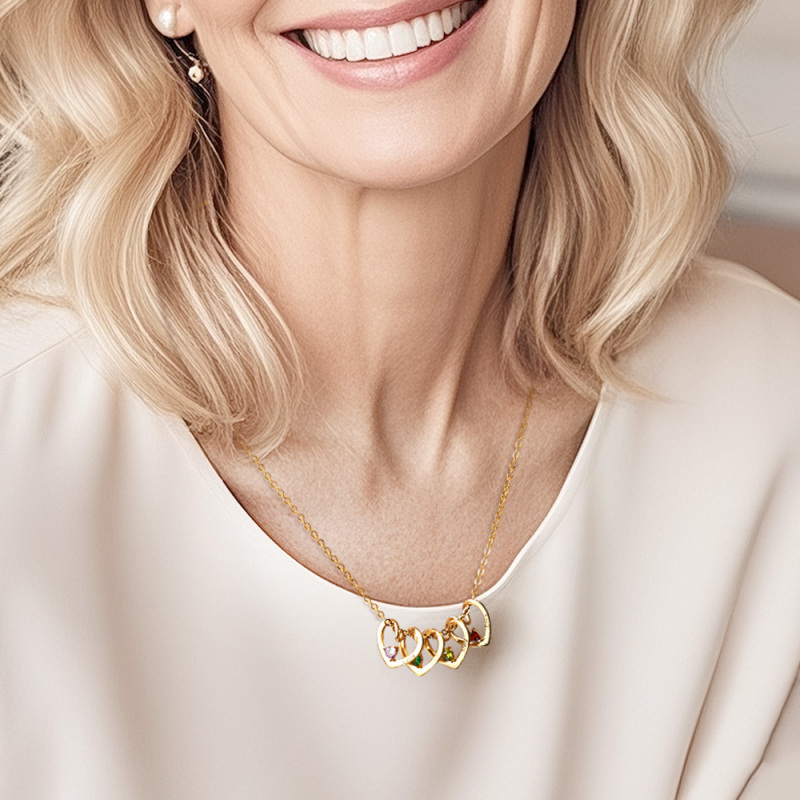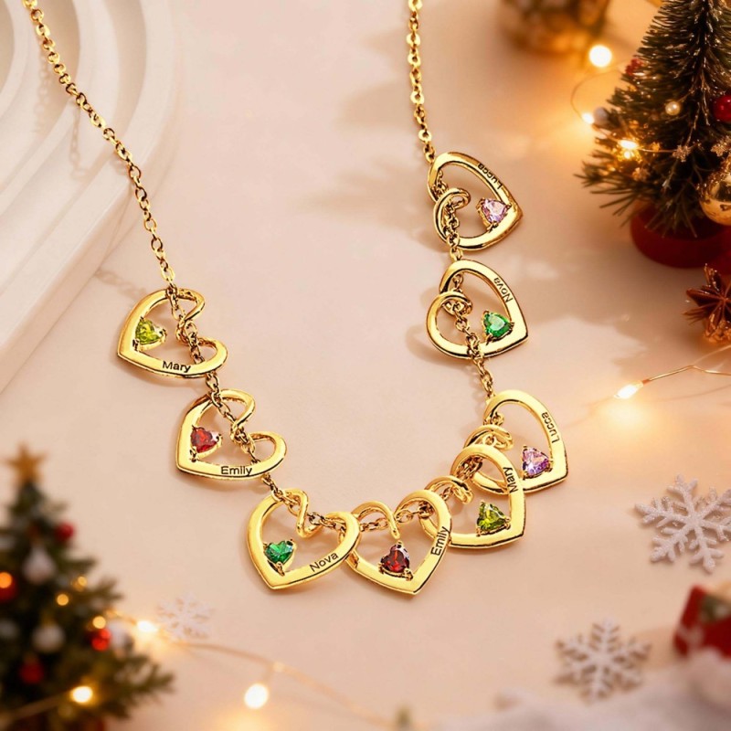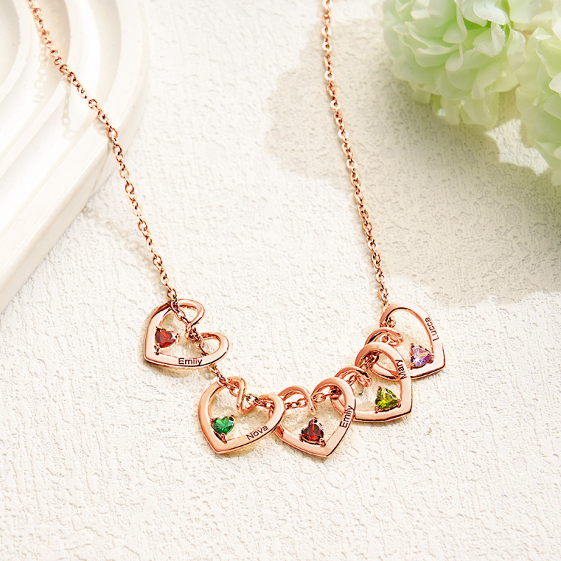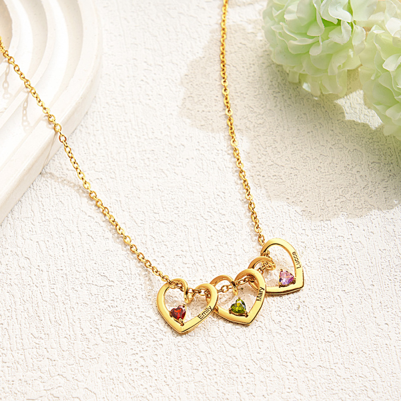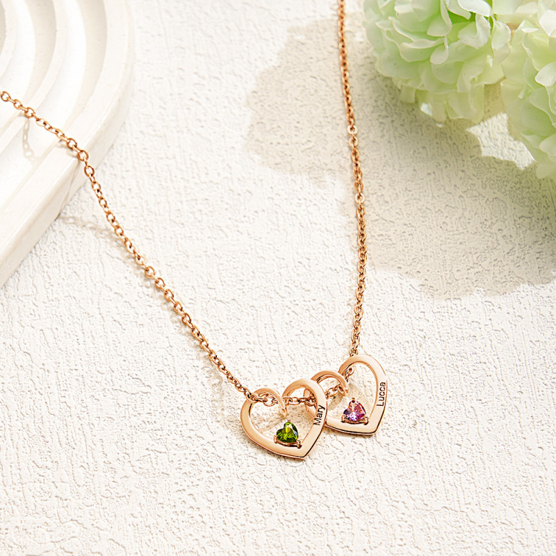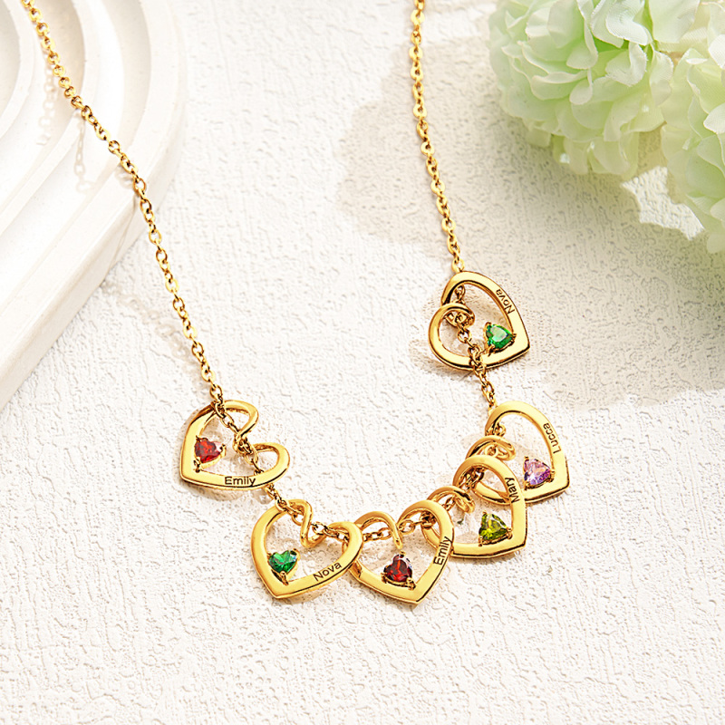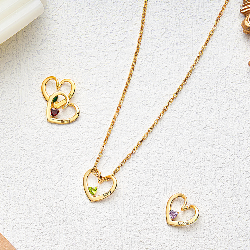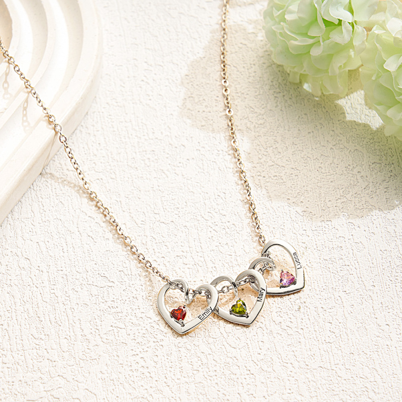 Personalized Heart Name Birthstone Necklace For Mom Grandma