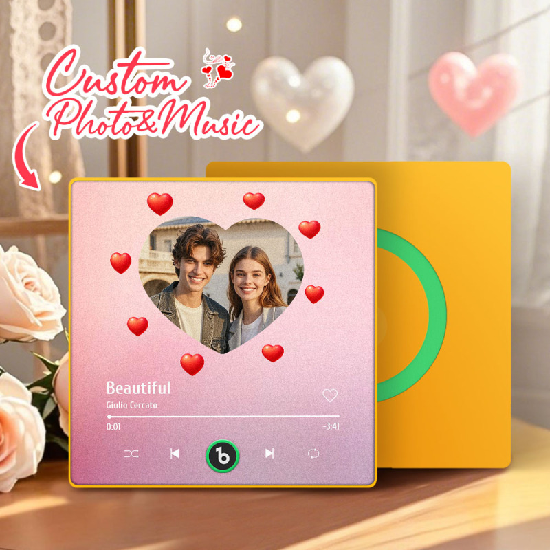 Personalized Music Fridge Magnet Heart Style Valentine Gift Album Fridge Magnet Music Wall Photo Sticker Music Movement That Can Be Played Gift for Couple