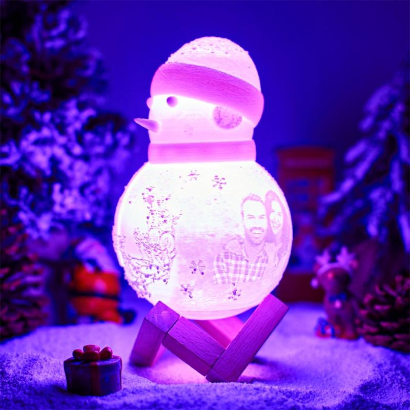 Personalized Night Light Photo Engraved Night Light Snowman Lamp Christmas Gift for Lover