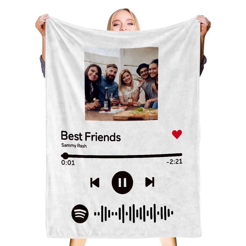 The spotify code blanket is an interesting product. This blanket can print your music code and print your favorite photos for free. This will be a work worthy of praise. Our blankets are made of environmentally friendly and safe materials, which are very soft to the touch. It is a good choice for sofa blankets, lunch break blankets, etc.